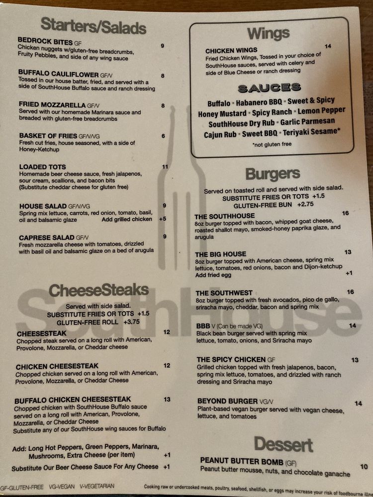 SouthHouse, a New American pub located in Philadelphia, offers a diverse menu with options for everyone. From rotisserie style wings to creative burgers like the Big House and Veg Out, there is something for every taste. The salads, such as the Beeting Heart and Mighty Leaf, showcase unique flavor combinations. Customers rave about the outstanding burgers and fantastic wings made with fresh, quality ingredients. The casual and friendly atmosphere, along with the quick and friendly service, make SouthHouse a highly recommended spot. The gluten-free options and delicious GF bread add to the appeal for those with dietary restrictions. Overall, SouthHouse provides a great dining experience with excellent food, diverse options, and welcoming vibes.