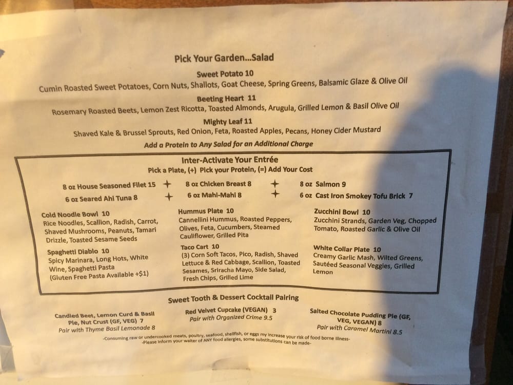 Creamy garlic mash, wilted greens, sauteed seasonal veggies, grilled lemon.
